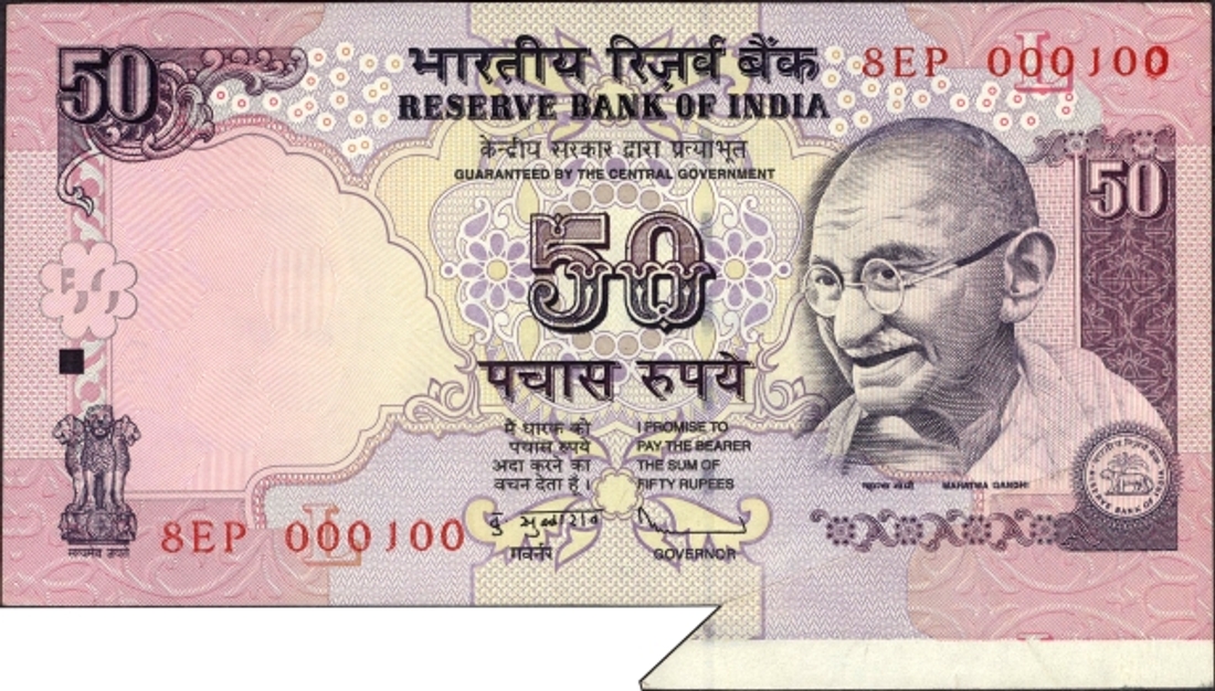 Error One Hundred Rupees Bank Note of Mahatma Gandhi o ...