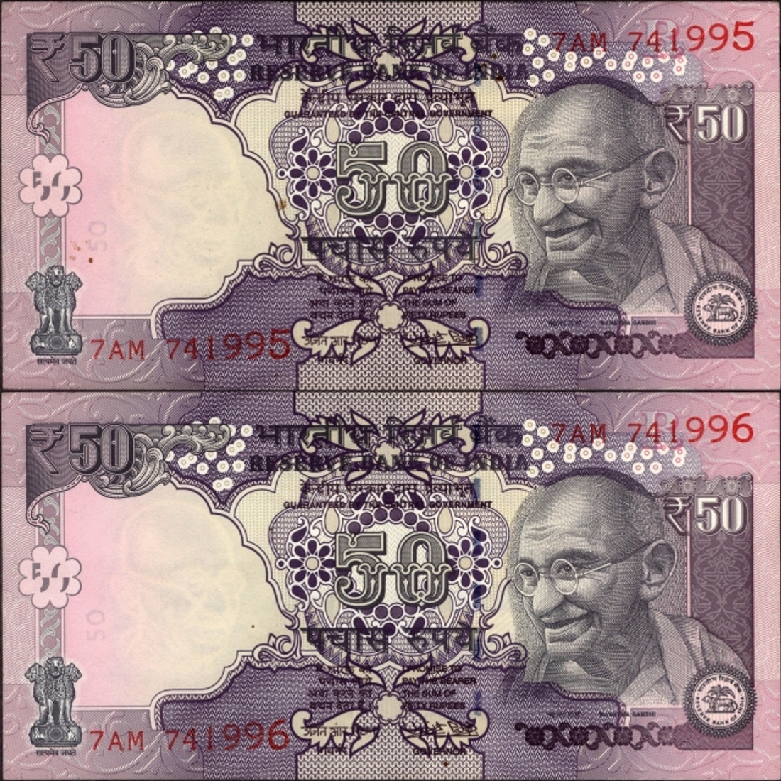 Serial Number Error Fifty Ruppes Banknote Signed by Urj ...