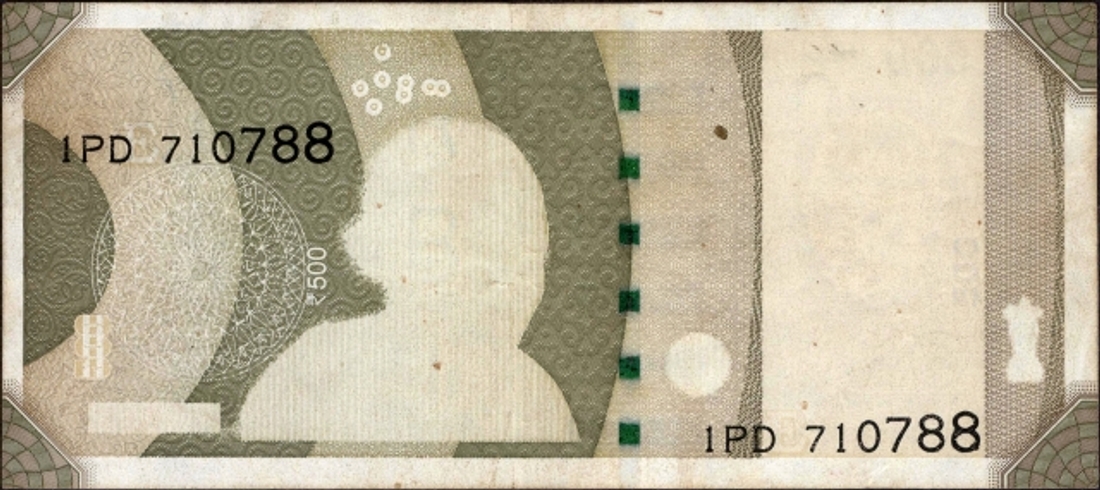 Reverse Printing Error Five Hundred Rupees Banknote Si ...
