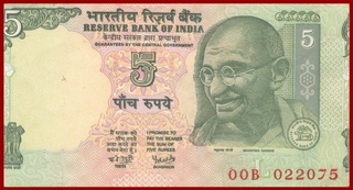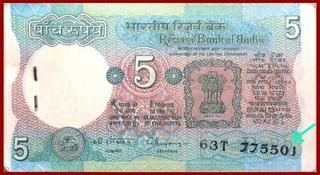 Five Rupees Banknotes Bundle Signed by I G Patel of Rep ...