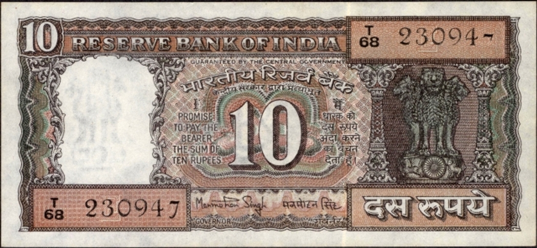 Error Ten Rupees Bank Note of Republic India of 2007.