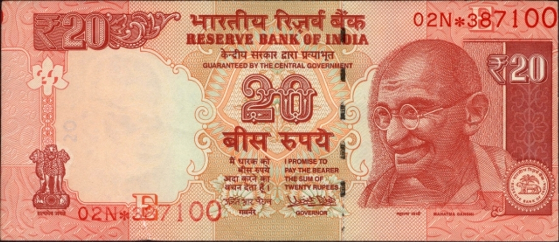 Extra Paper & Cutting Error Twenty Rupees Banknote Sign ...