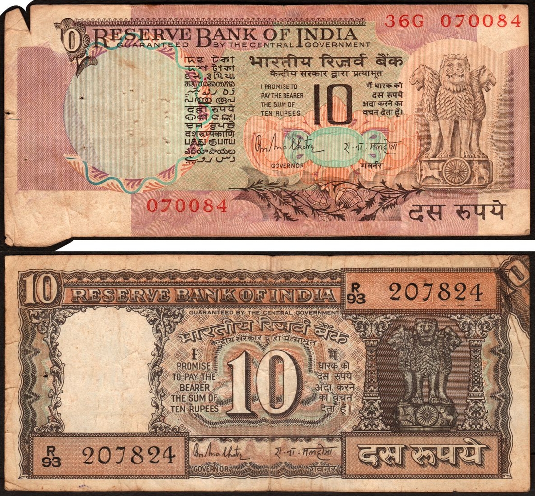 Serial Number Printing Error Ten Rupees Banknote of 201 ...