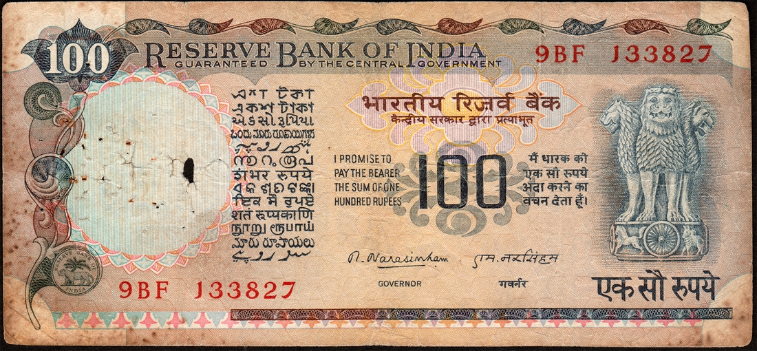 PMG 35 Graded One Hundred Rupees Banknote of Republic I ...