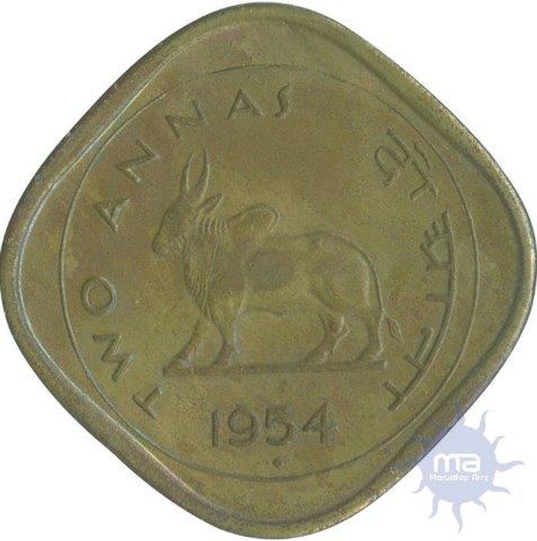 Cupro Nickel Two Annas of Bombay Mint of the year 1954.