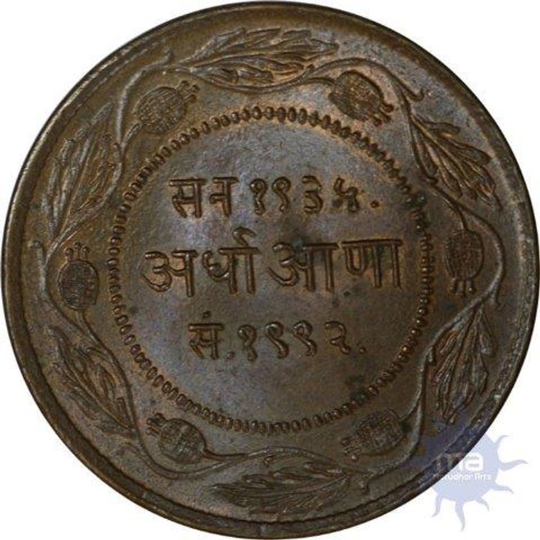 Copper Half Anna Coin of Mulher Rao II of Indore State.