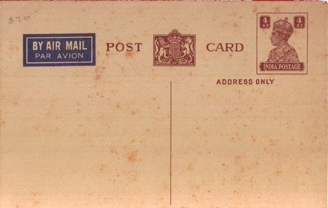 Post Card of Four Annas of King George VI of 1942.