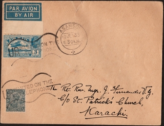 First Flight Air Mail Cover from Calcutta to Karachi w ...