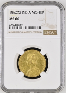 Very Rare NGC MS 60 Grade 1862 Gold One Mohur Coin of V ...