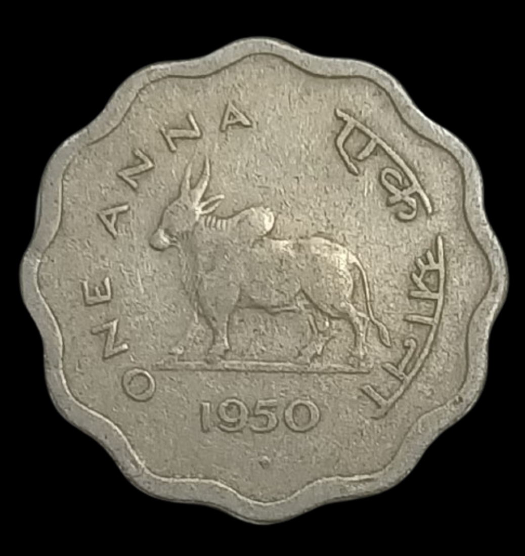 One Anna Cupro Nickel Coin of 1950 of Bombay Mint Bull series.
