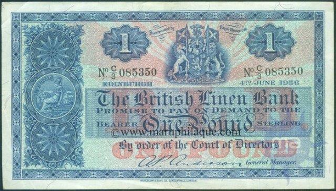 1 Rupee Paper Money of Ceylon of 1943 issued.