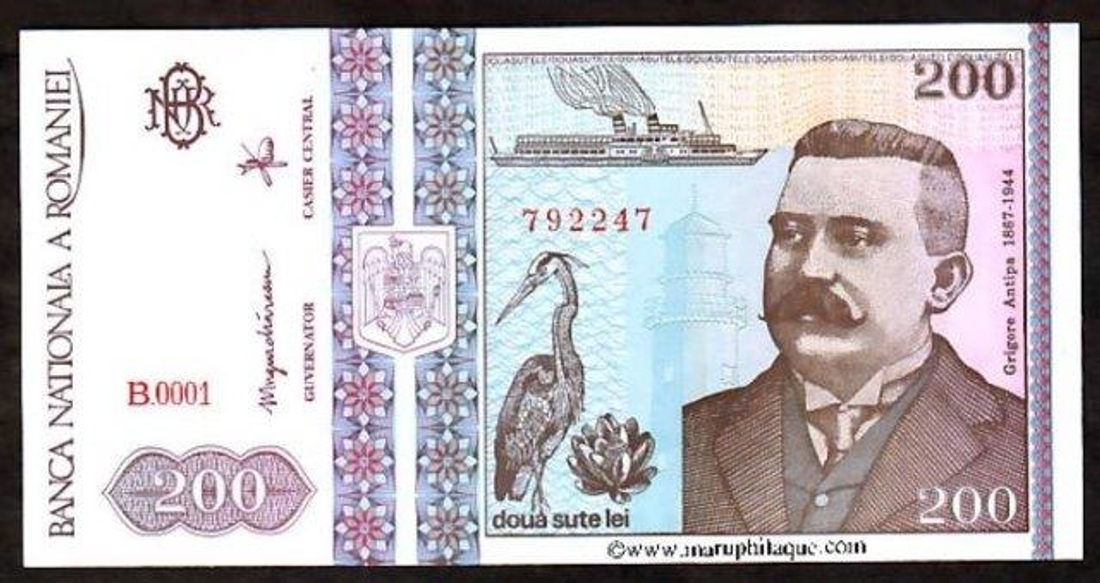 Paper Money of Romania of 200 Lei of 1992 issued.