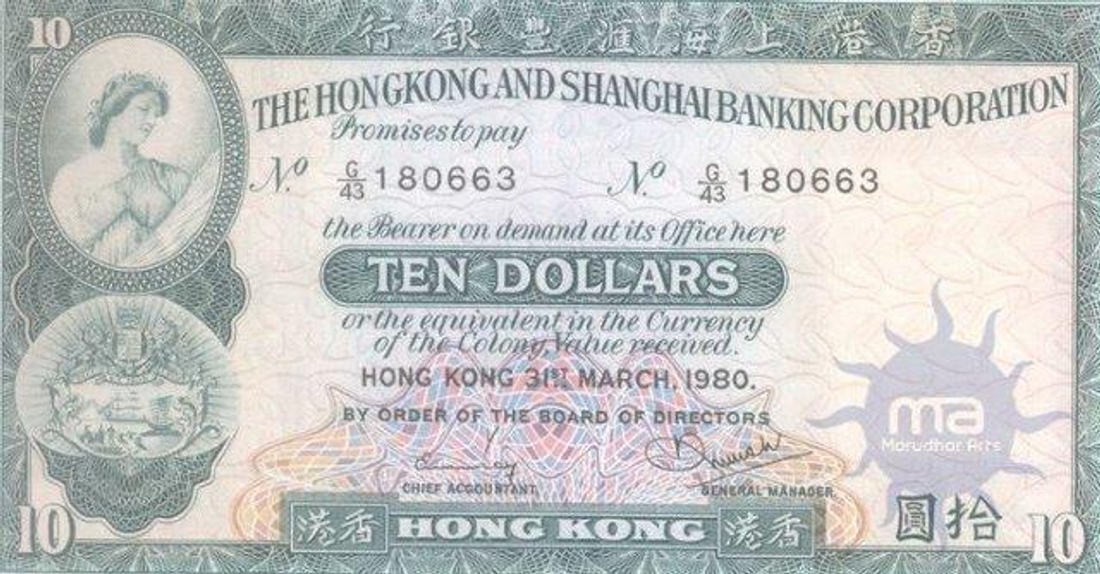 Paper money of Hong Kong, 1 Dollar of 1957 issued.