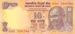 10 Rupees Bank Note of India of D. Subbarao Govenor of 2009 issued.