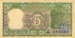 5 Rupees Bank Note of India of B.N. Adarkar Governor of 1970 issued.