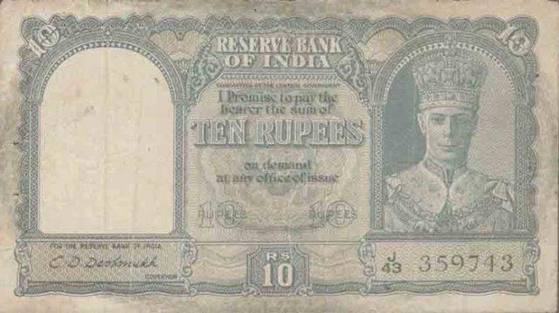 Ten Rupees Bank Note of King George VI signed by C.D.Deshmukh.