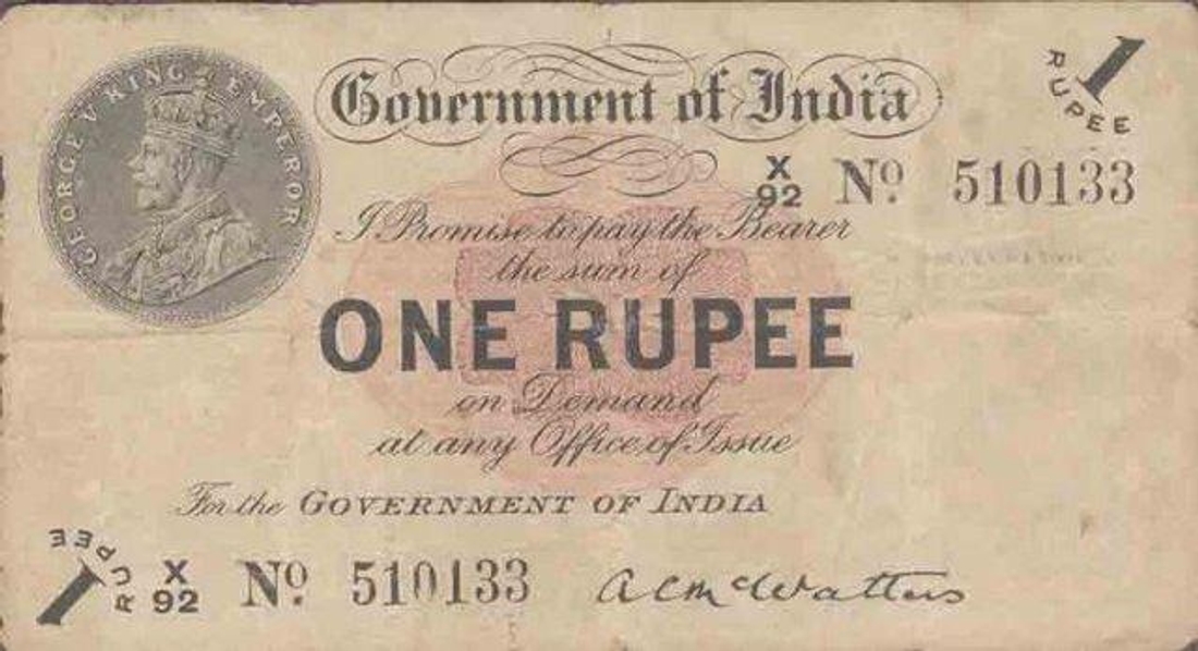 Rare One Rupee Note of King George, A C Mcwatters, correct and Split gujarati