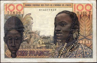 Rare One Hundred Francs Note of 1964-1973 of Madagascar.