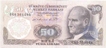 Paper money of Turkey of 50 Lirasi of 1970 issued.