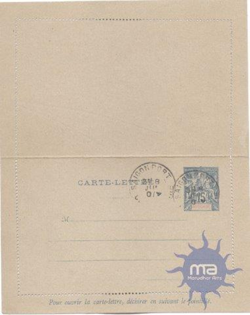 15 F. Indo-China, France, Post Card Envelope, Cancelled at Saigon Port for Use as 1st Day Cancellation, Mint.