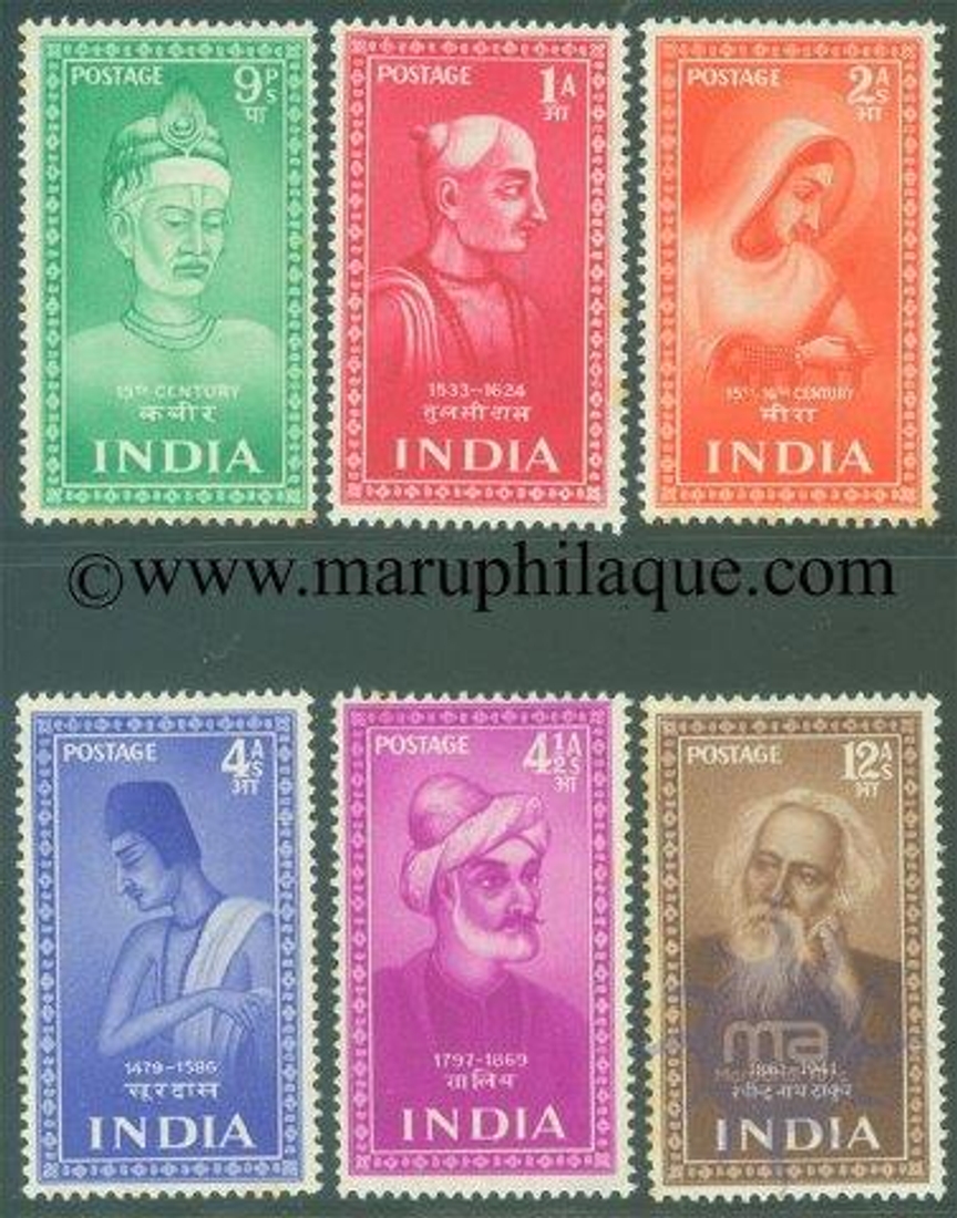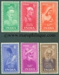 1952. Complete Set of 6 Stamps of India. White Gum.