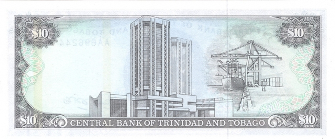 Ten Dollars Bank Note of Trinidad and Tobago.