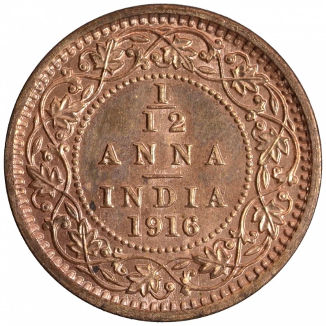 PCGS MS 64 RB Graded Bronze One Twelfth Anna Coin of Ki ...