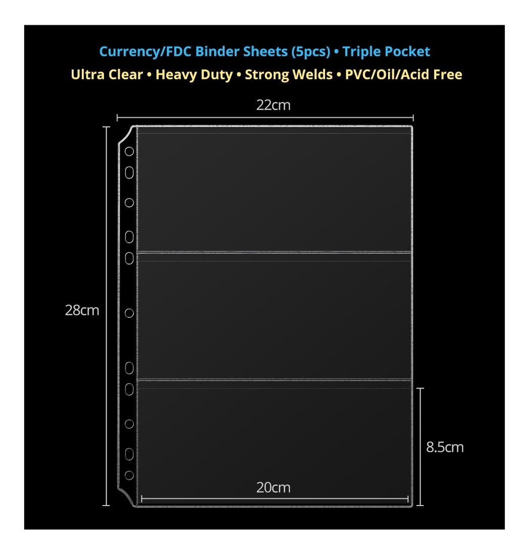 Binder 3 Divider Sheet for Bank Notes, FDC - Pack of 5 Sheets.