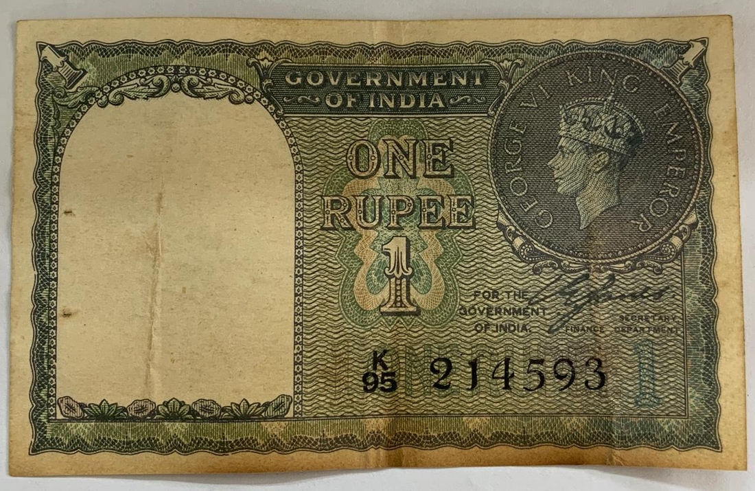 One Rupee Note of King George VI of 1940 Singed By C. E ...