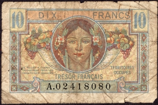 Fifty Francs of Ten Belgas Bank Note of Belgium 1935-1947.