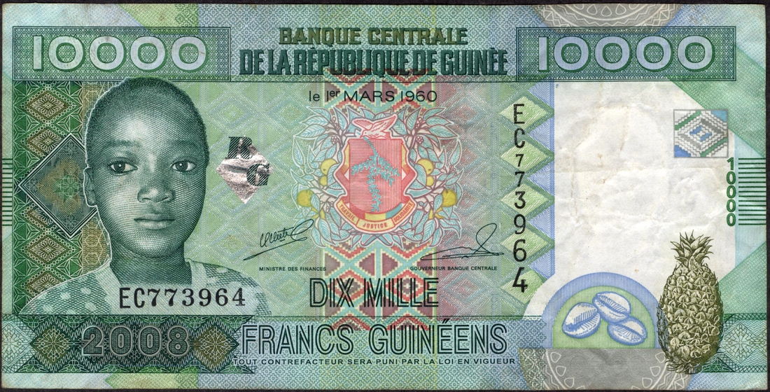 Ten Thousand Francs Note of 1995-2003 of Madagascar.