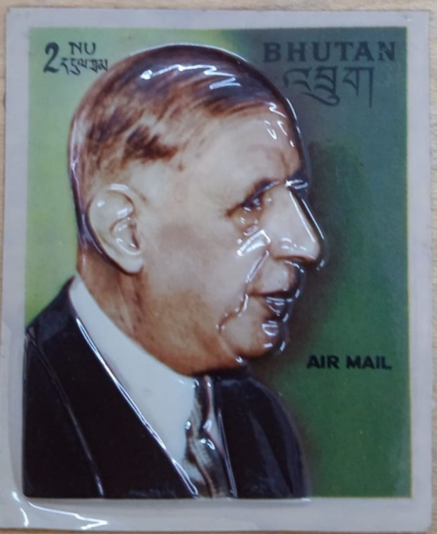 Extremely Rare Plastic Moulded Embossed Stamp of Charles de Gaulle issued in 1972