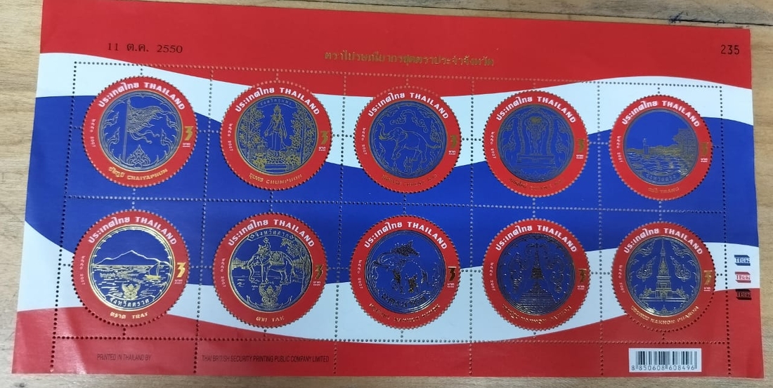 Extremely Rare Miniature Sheet of Thailand Provincial Emblems issued in 2007.