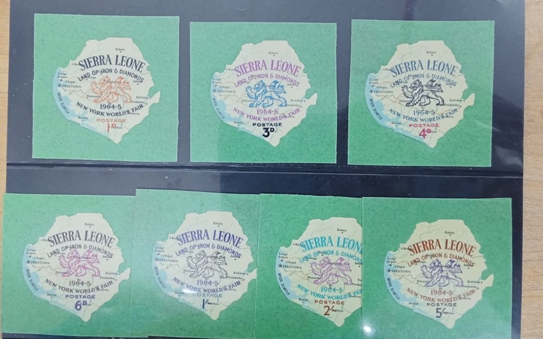 Extremely Rare MNH Set of 7 Odd Shaped Stamps of New York World's Fair, Sierra Leone 1964-5.
