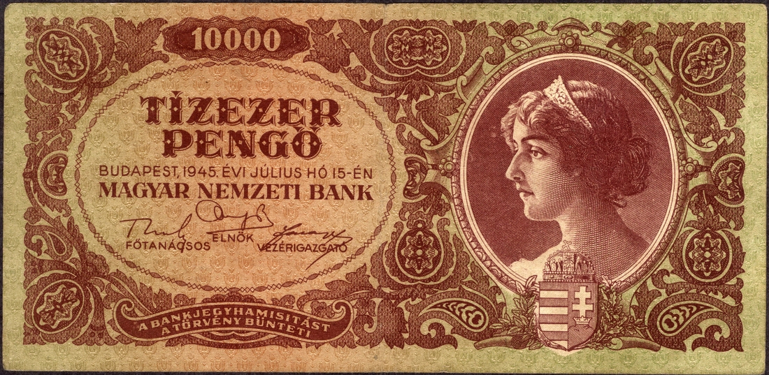 Ten Thousand Pengo Bank Note of Hungary of 1945.