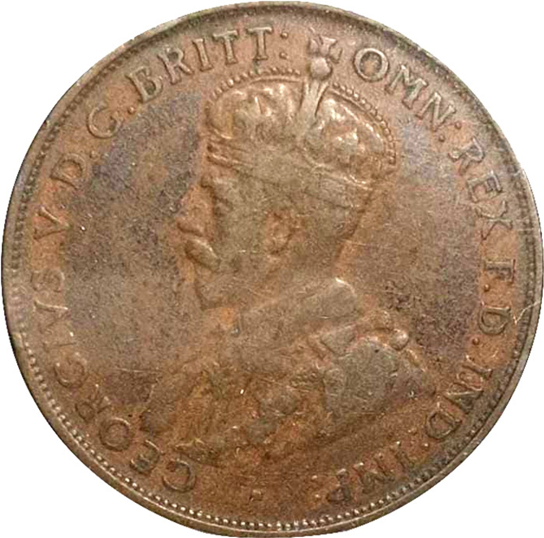 Bronze One Penny Coin of King George V of Australia Issued in 1934.