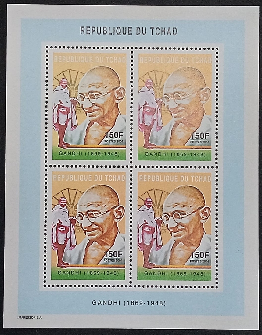 Mahatma Gandhi 4V Sheet Let issued of Chad year 1968.