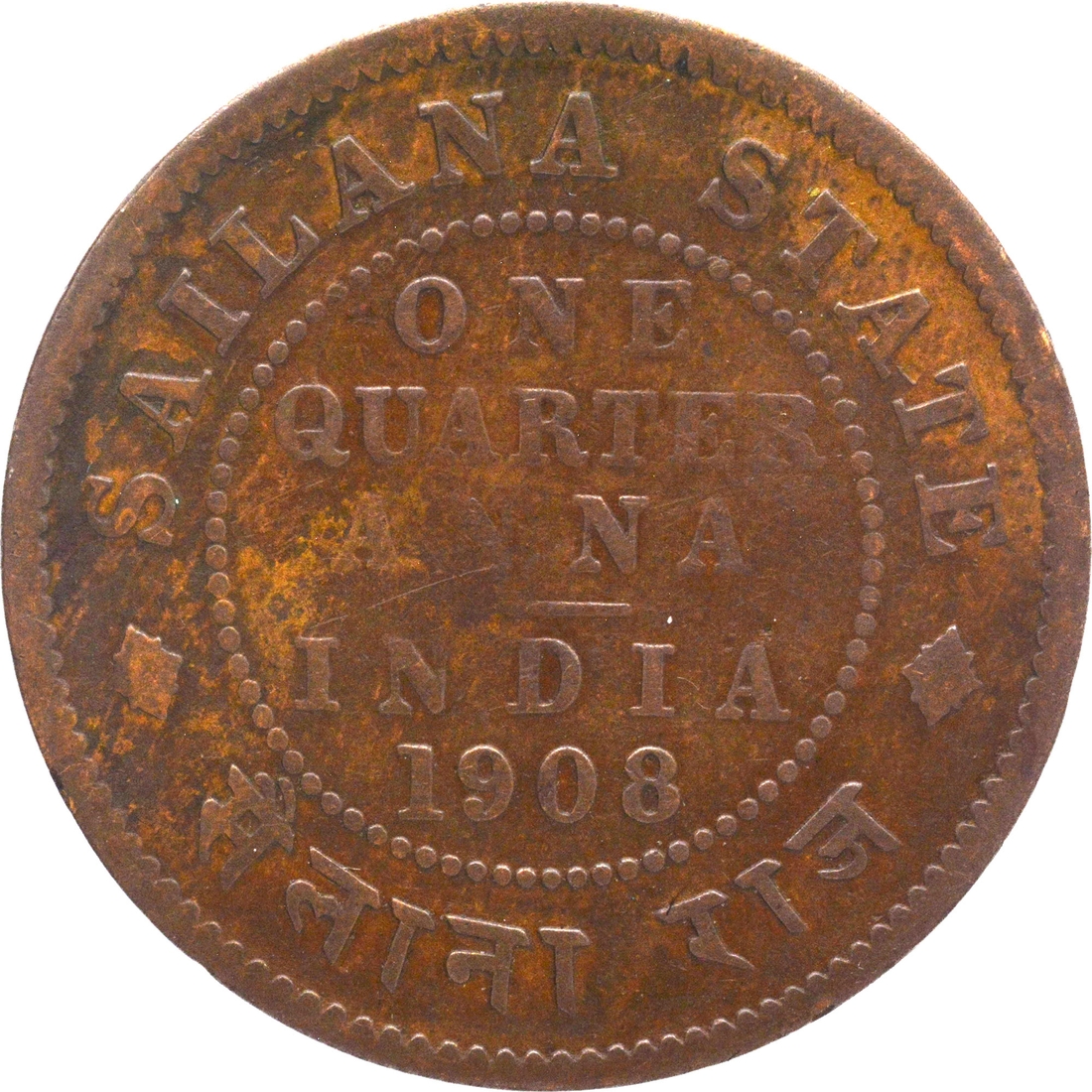 Copper One Quarter Anna 1908 AD Coin Jaswant Singh of Sailana State.