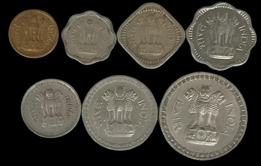 1962 Set of Seven Copper-Nickel Naye Paise Coins of Republic India.