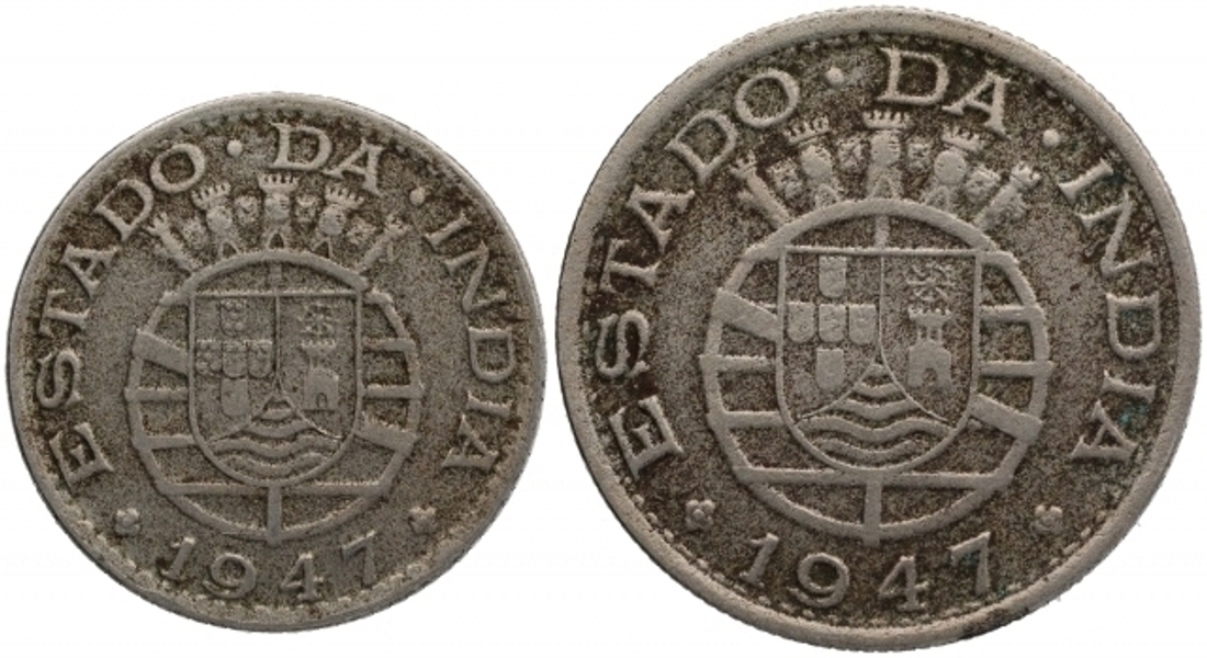 1947 Set of Two Cupro-Nickel Rupia Coins Indo-Portuguese of Luiz I.