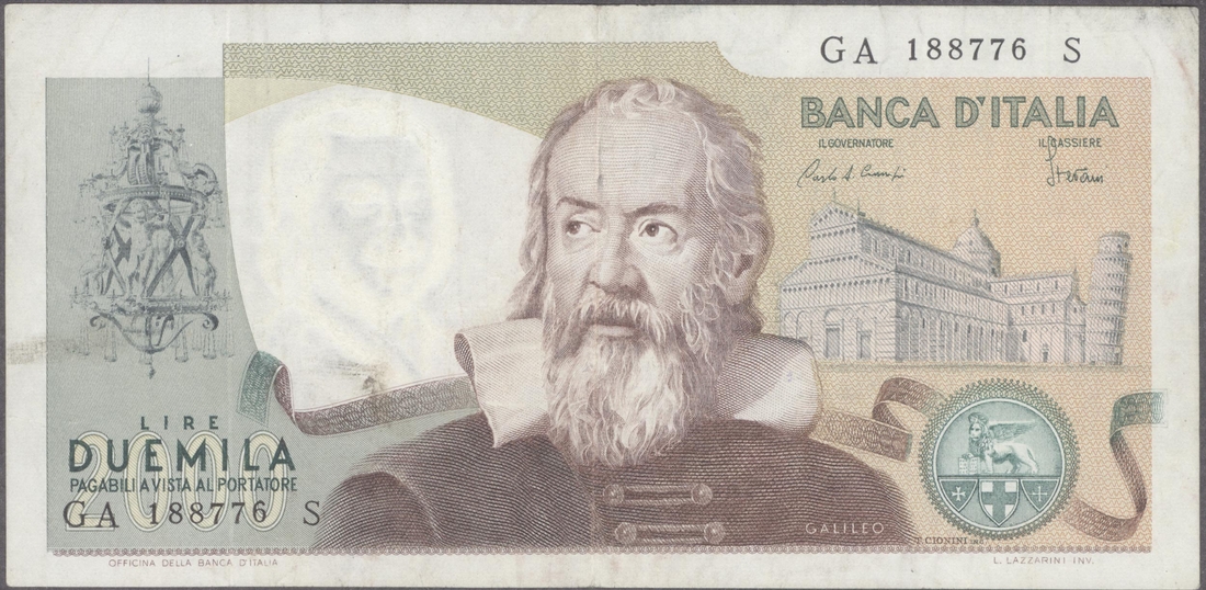 Two Thousand Lire Bank Note of Italy 1973-1983.