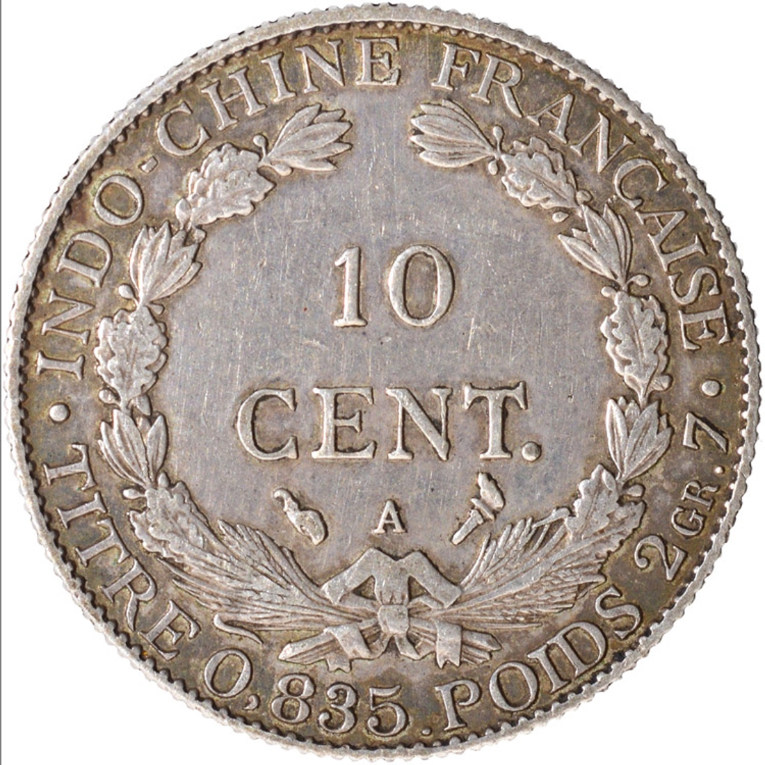 1900 Silver Ten Cents Coin of French Indochina.