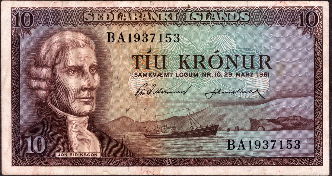 Ten Kronur Bank Note of Iceland 1957-1964.