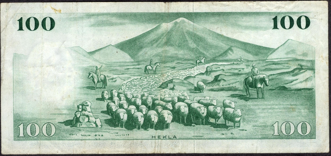 One Hundred Kronur Bank Note of Iceland 1957-1964.