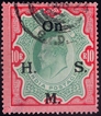 Error Stamp of King Edward VII, 10Rs, ON H. M. S. OVPT printing shifted bottom