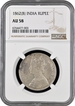 Very Rare NGC AU 58 Graded Silver One Rupee Coin of Bombay Mint of Victoria Queen of 1862.