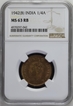 NGC MS 64 RB Bronze One Quarter anna Coin of King Geo ...