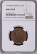 NGC MS 62 RB Bronze One Quarter Anna Coin of King George VI of Bombay Mint of 1942.
