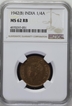 NGC MS 62 RB Bronze One Quarter Anna Coin of King Geo ...
