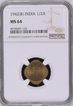 NGC MS 64 graded Nickel Brass Half Anna Coin of King Ge ...